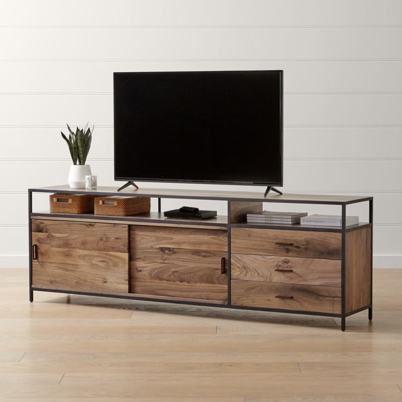 Modern Industrial Media Console ANVIL Steel TV Stand ... from i.pinimg.com Elastic expandable console industrial chic? Modern lighting is a breathtaking way to upgrade each room in your home. This set offers plenty of shelf, drawer, and cabinet space for all your books and electro… I love the look and feel of this console dining table. When you use all three included extensions, this table expands to seat eight people. Watch how this modern and fashionable console accent table makes a chic statement in your entryway or living room. Except using it as a hallway/entryway table to decorate your living area, this piece of furniture is also wide enough to work as a tv stand/media entertainment. Your modern light fixtures should be equal parts functional and fashionable.