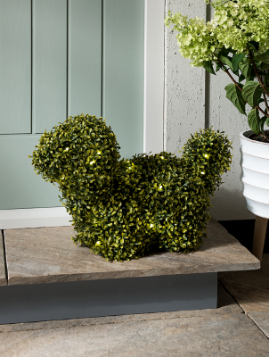 High imitation ,look like real; Topiary standing dog 50 lights knock down. This topiary sculpture is made from steel wire which is shaped and welded together to form the topiary frame.every piece is hand made so dimensions shown are approximate. Naughty dog topiary lifting leg whimsical garden statue sculpture bush figurinefrom $257.60. You'll ruff how our boxwood dog topiary add a charming look to your garden!